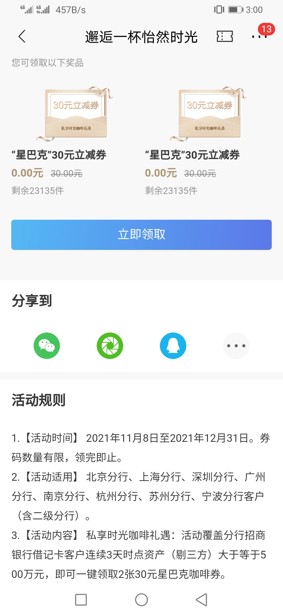 500万领60元星巴克