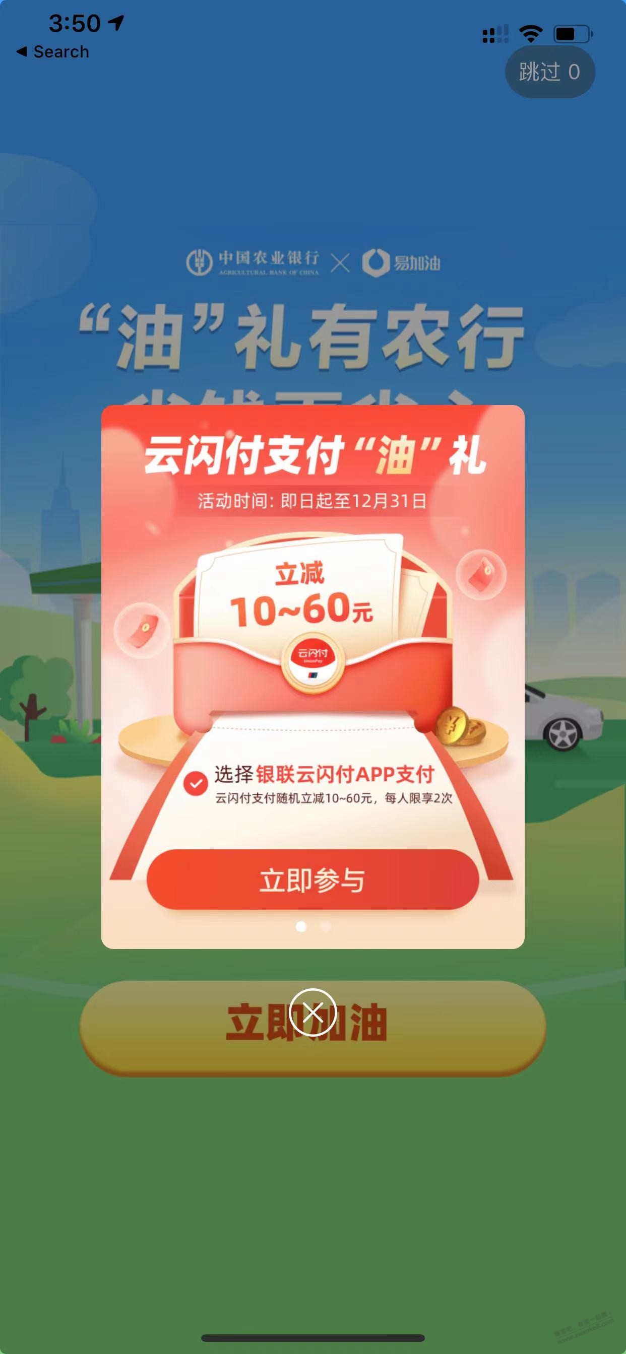云闪付X易加油X农行 加油减 (10-60)+20