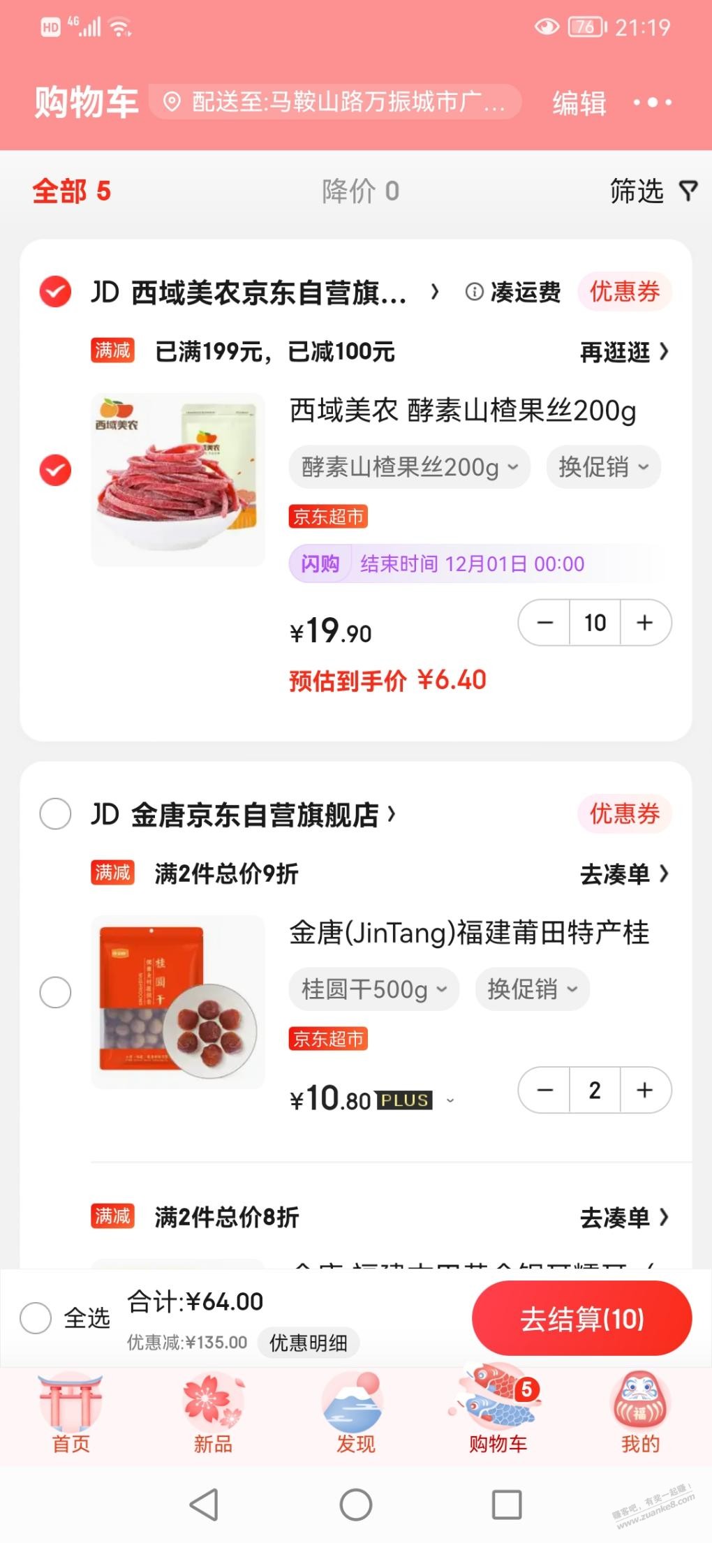 没199-35券的建议让。。拍10件64,付款再用优惠