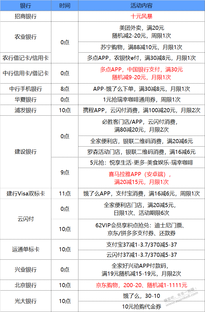 12月1号 星期三 每天一分钟知晓银行活动线报