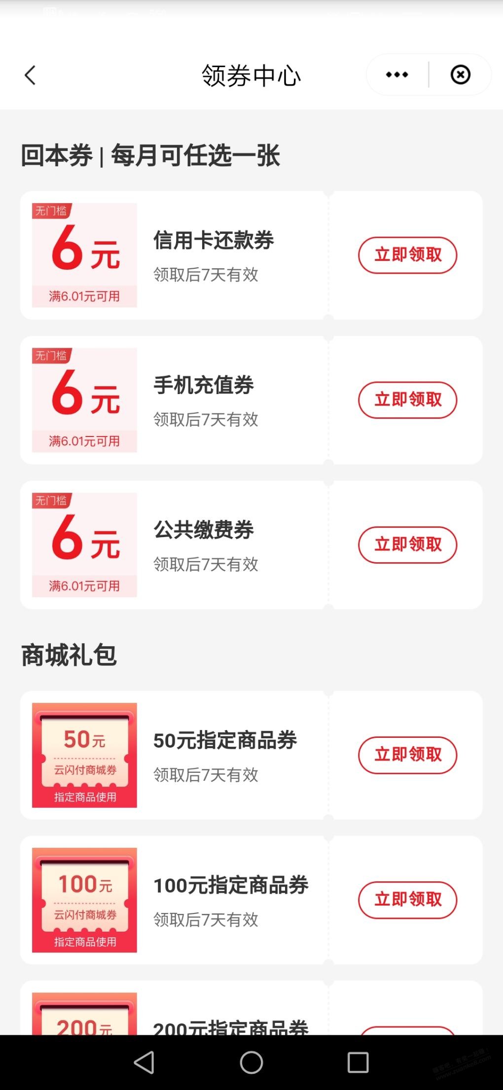 云闪付每月1次的6元还款券,每周1次的100-3还款券(每天9点),1元通用券(可还xing/用卡),每月10次