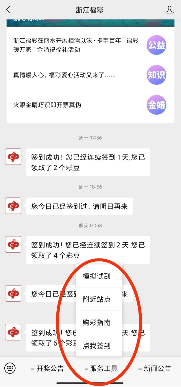 公众号 浙江福彩 菜单栏