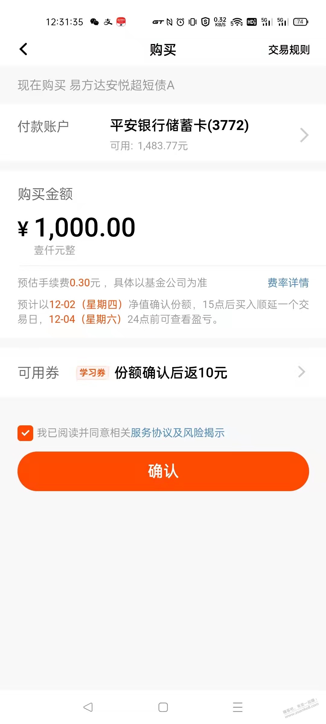 平安基金10元毛