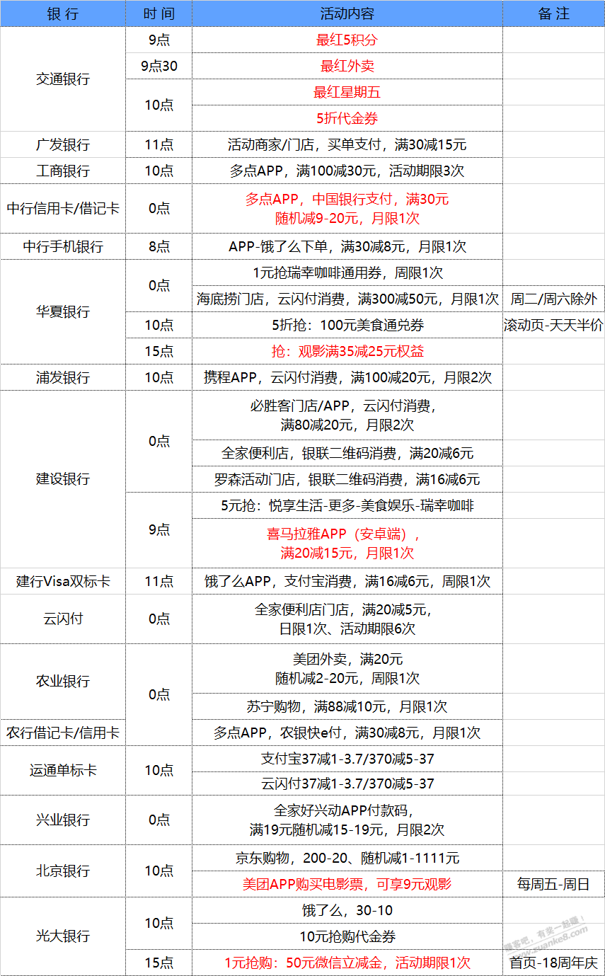 12月3号 星期五 每天一分钟知晓银行活动线报