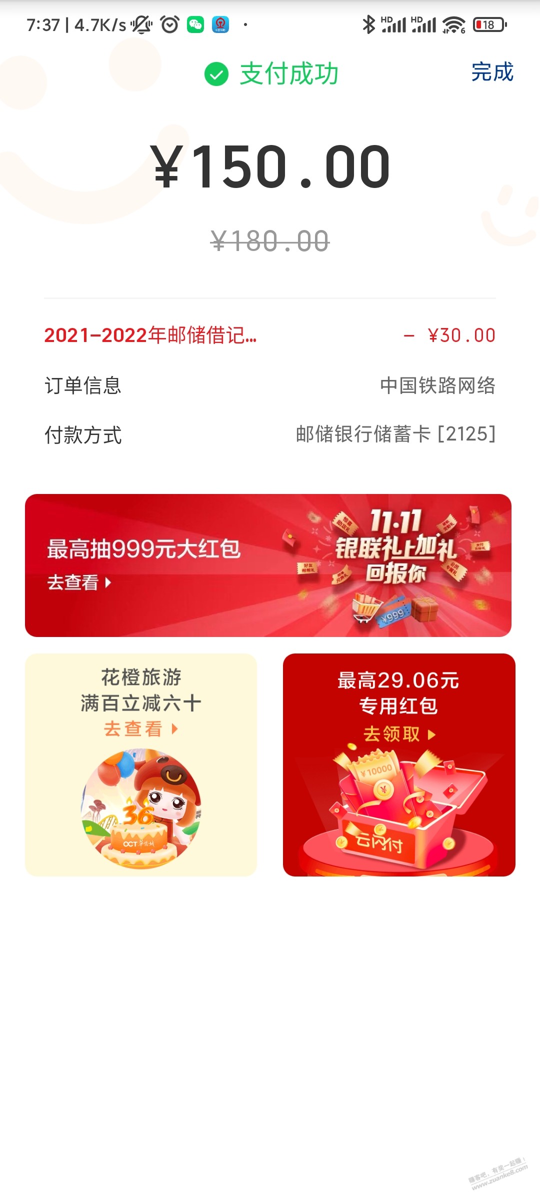 今天下单火车票,不懂邮储什么优惠活动,可以减30