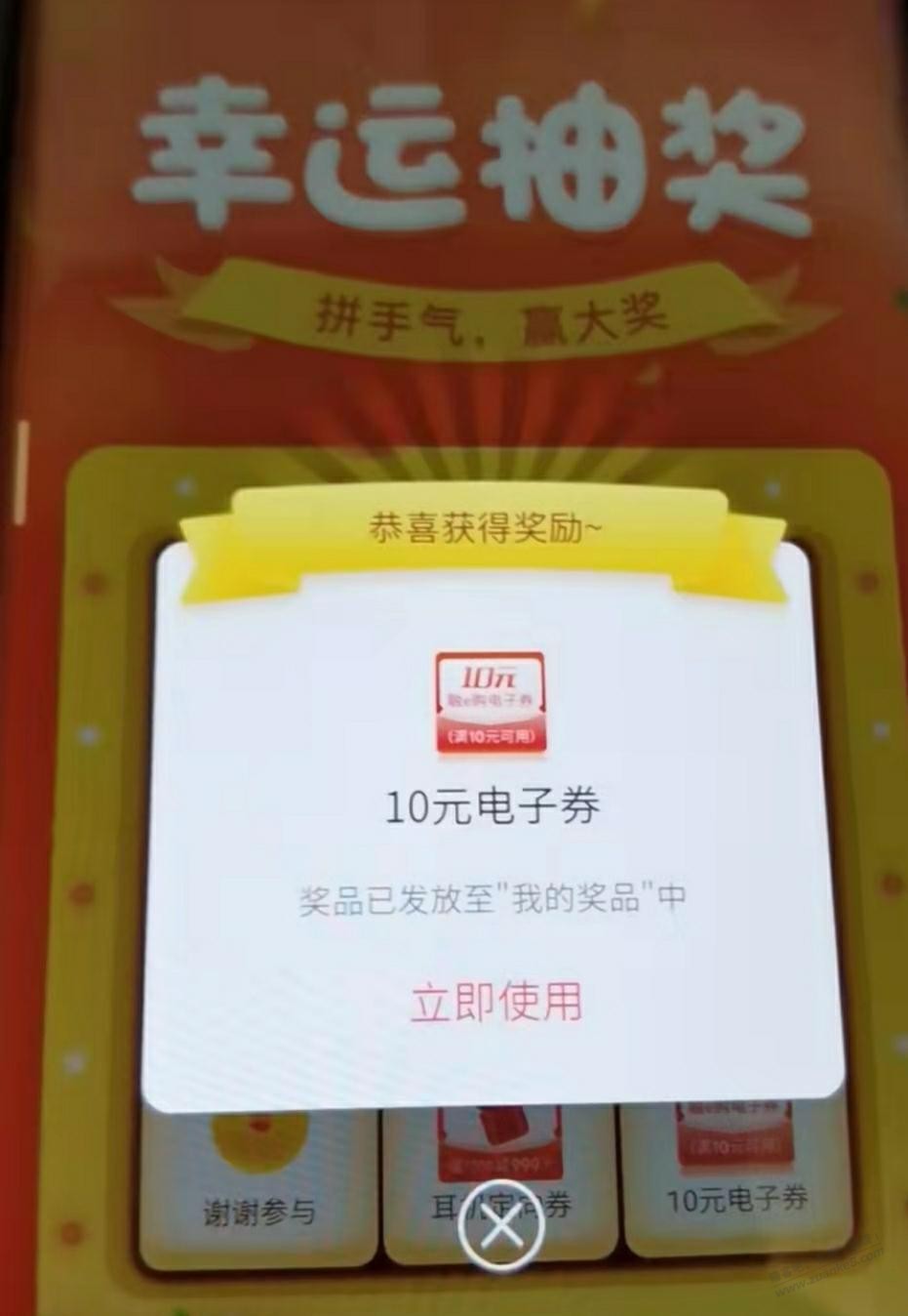 中了10通用券