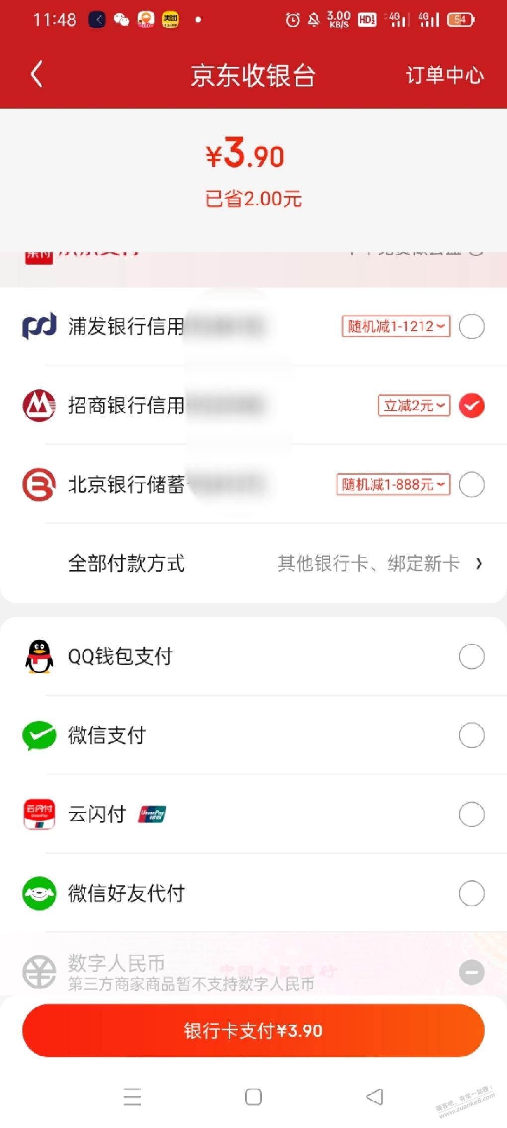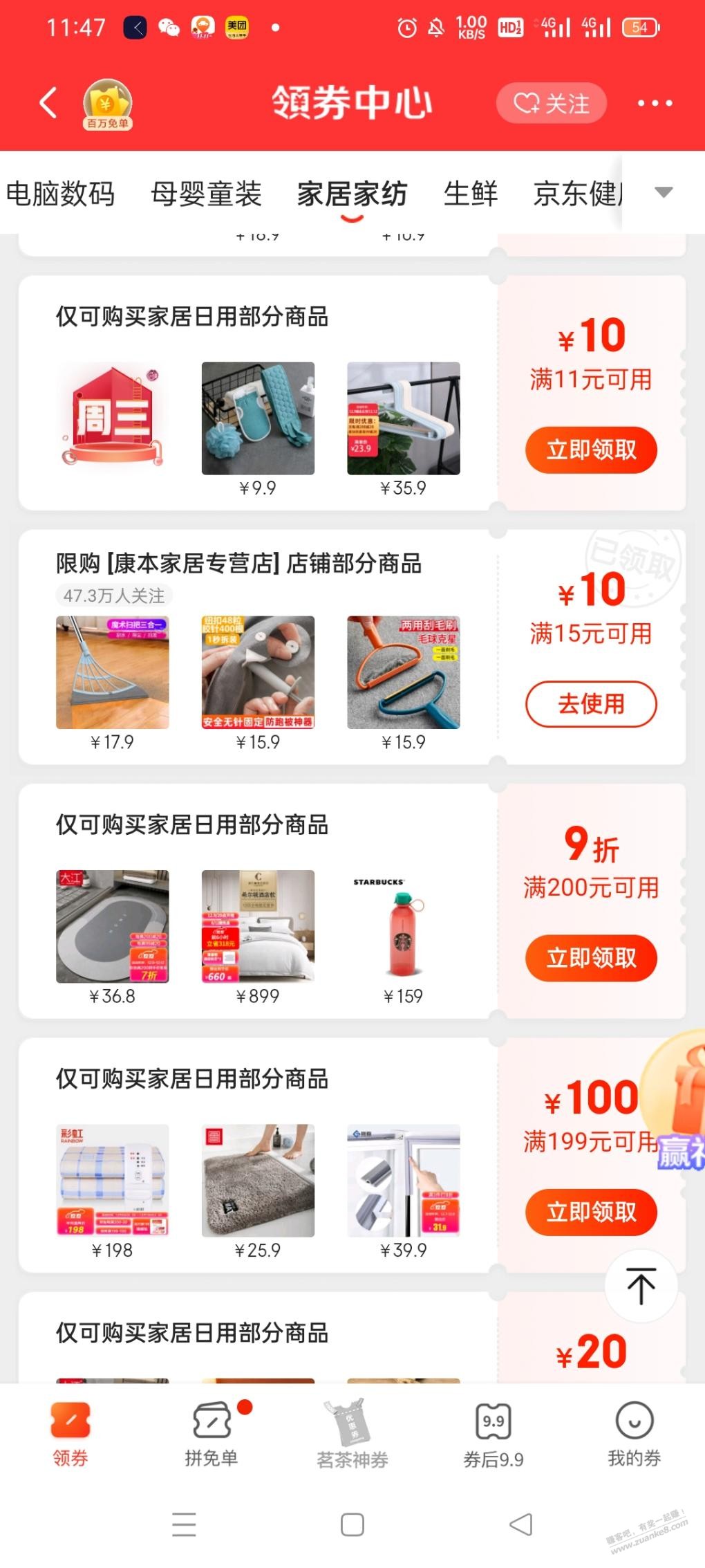 京东APP领券中心,家居家纺,15-10优惠券,貌似页面详情里也可以领,我有两张。招行xing/用卡支付立减2元,或者云闪付签到金兑换5—2优惠券,实付3.9元。