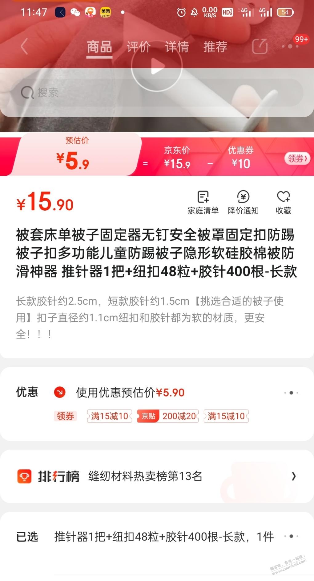 被子固定器3.9元包邮,觉得划算的买