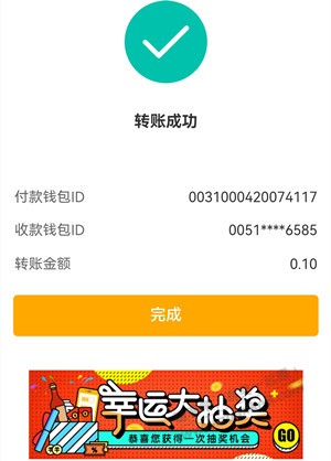 3、转账了0.01元后,点击转账成功页面底部的图片【幸运大抽奖】进去活动里抽奖,抽到10元微信立减金按照提示跳转到微信领取就会秒到