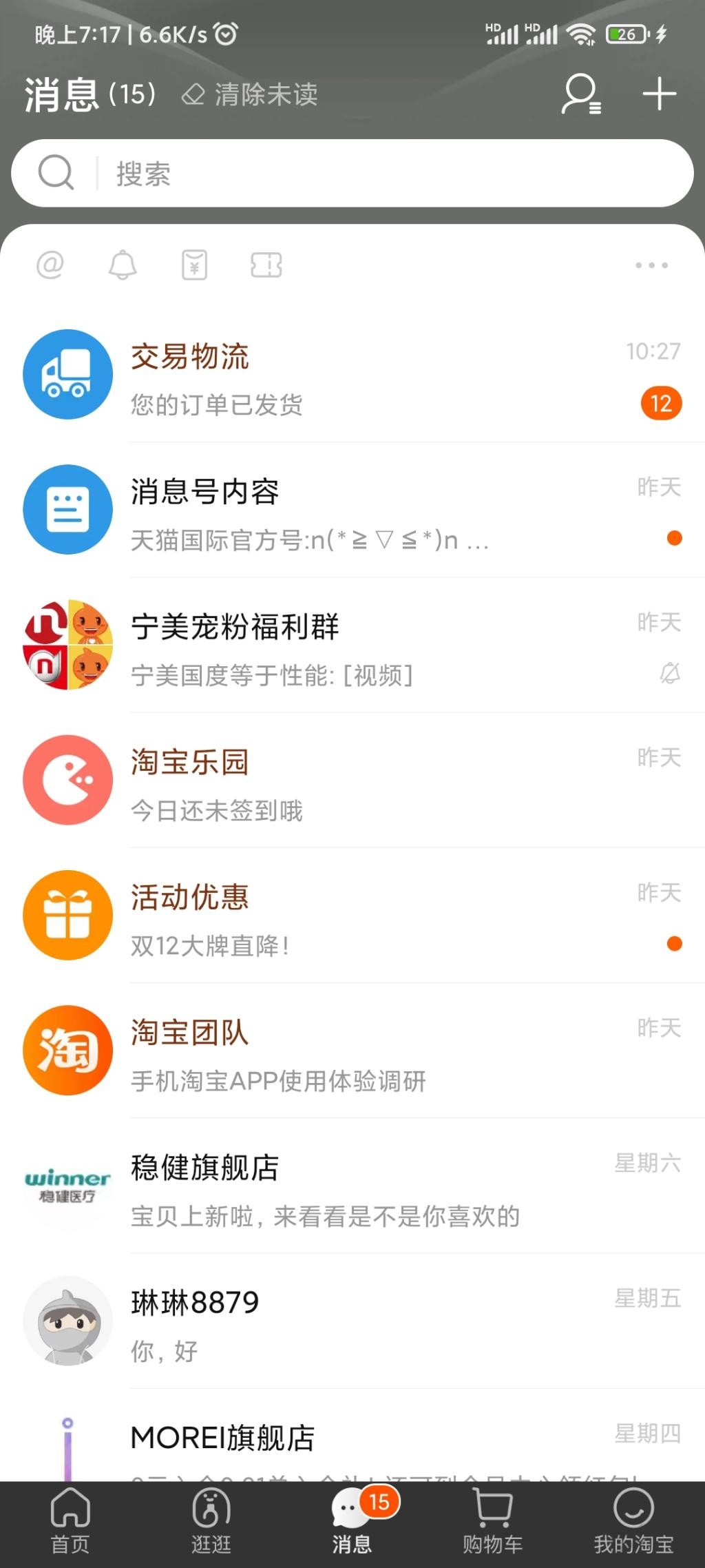 淘宝app。。。消息。。。。淘宝团队。。。答完有小毛
