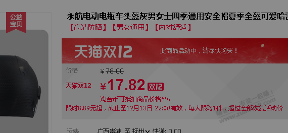 淘宝限时半价头盔 10块左右