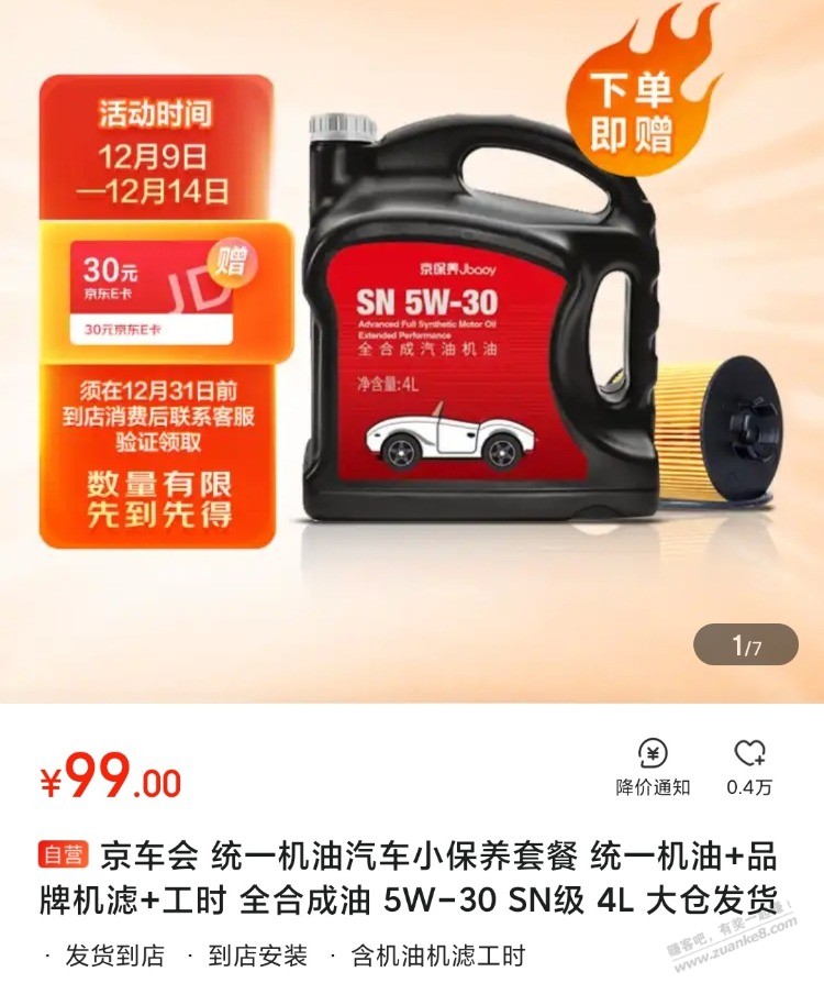 今天99元,本月保养完成送30E卡。包机油机滤工时。