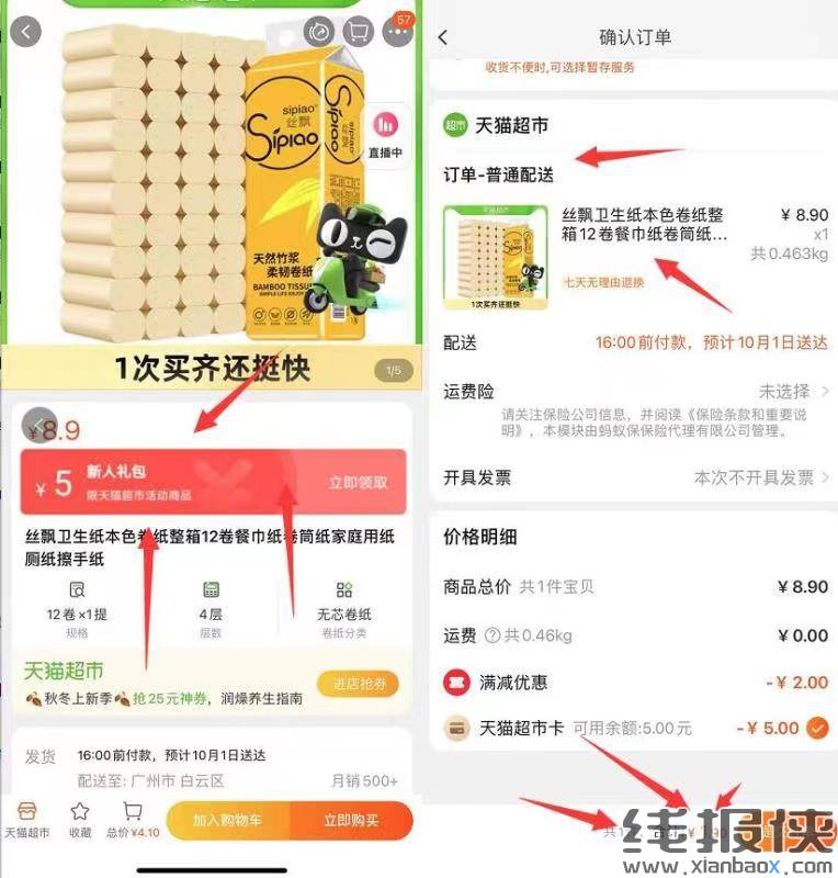 12卷丝飘卷纸一提部分号有3~8元猫超卡叠加券基本0~2