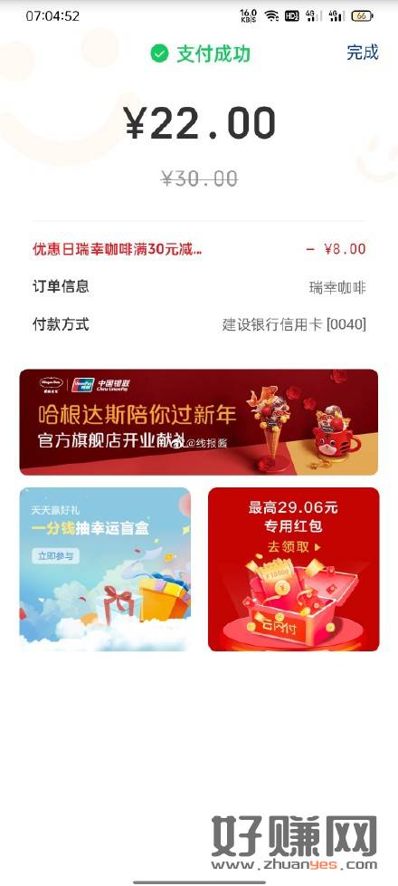 瑞幸APP——礼品卡——定制新礼品卡————现金卡——自定义面额30——支付方式(选云闪付支付)——可以看到30-8付款