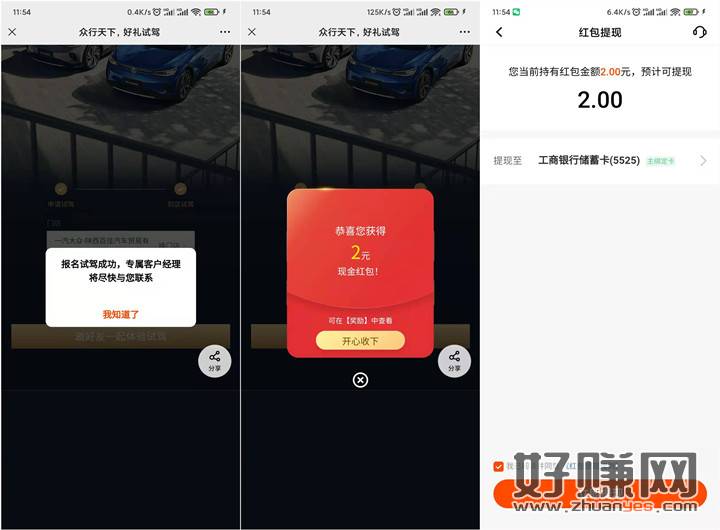 微信打开链接授权登录后随便选择一个门店预约试驾即可抽取随机现金红包
