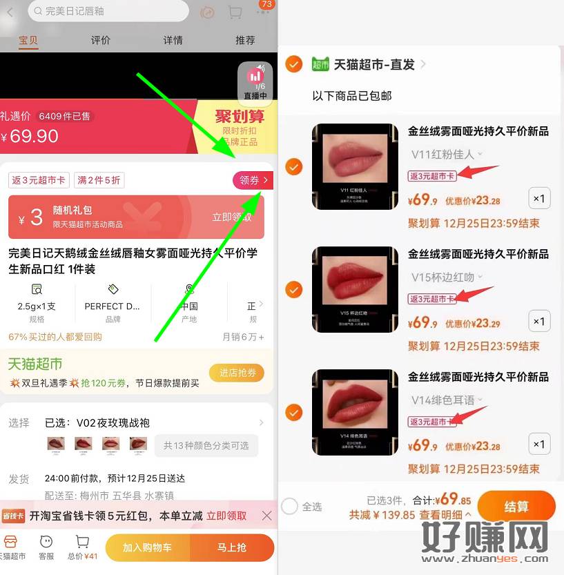 1.领取猫超199-25券2.拍3件到手69.8元送9元猫卡实