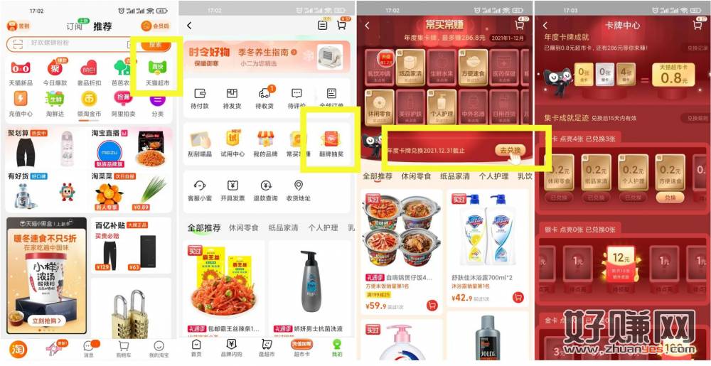 【天猫超市老用户领随机余额】昨天没领的去领下,马上带大家撸蛋黄酥!打开手机淘宝->首页->天猫超市->我的->常买常赚->去兑换->进去就能看见兑换的比例!