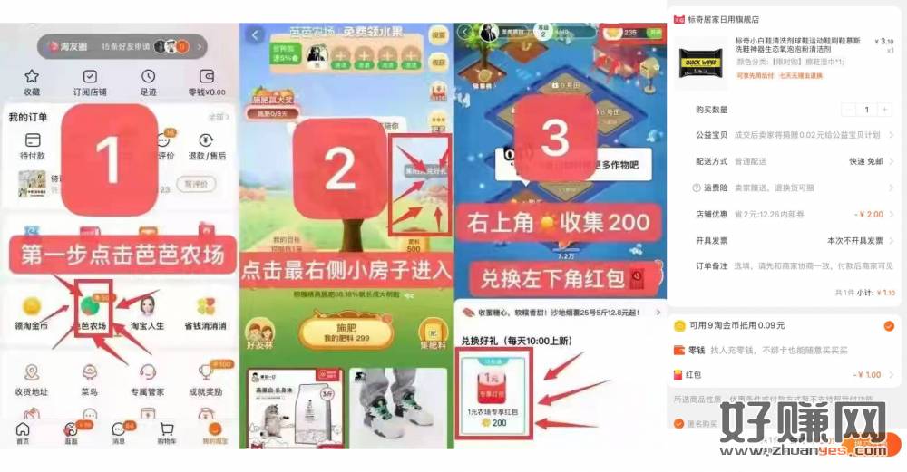 淘宝“芭芭农场”兑换1亓荭包看上图步骤,0.1抵扣