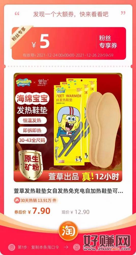 萱草发热鞋垫10双仅需7.9元[ 包邮 ]我用过,发热8小时
