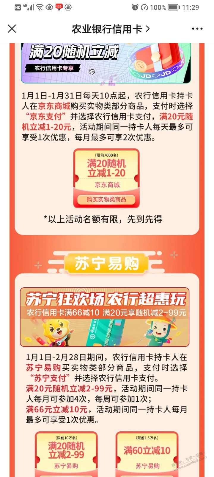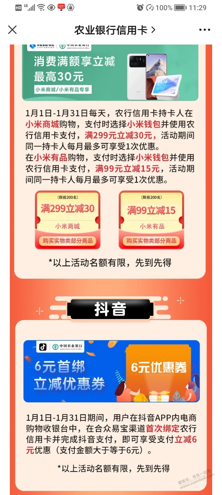农行XYK一月活动,公众号推送的