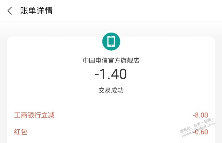 刚刚支付宝充10元话费工行xing/用卡立减8元