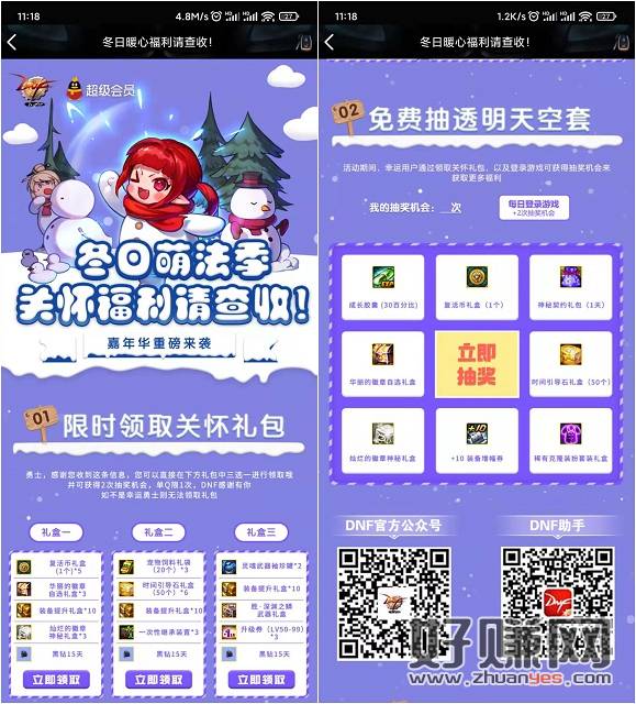 DNF冬日关怀福利免费领取15天黑钻 限部分用户可领 手Q打开链接进入活动 部分用户可免费领取15天黑钻和其他游戏道具 下拉页面登录游戏后还可参与抽奖!有需要的小伙伴们可以去参与领取一下! 活动地址:https://act.qzone.qq.com/v2/vip/ ... iuin=49864986&_wv=1 手Q扫码: