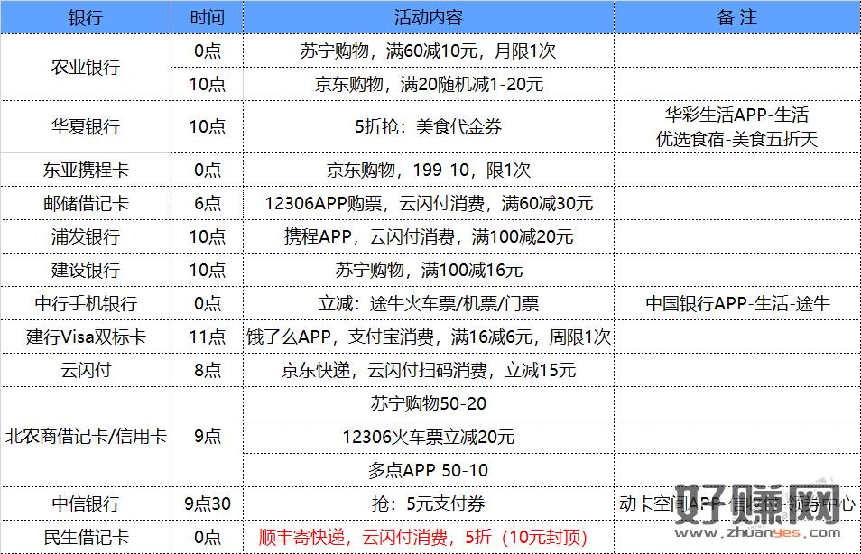 1月5号 星期三 每天一分钟了解最新银行羊毛优惠