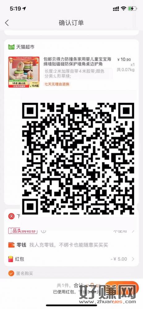 1-保存图片。桃宝扫码领天猫超市5膨胀福袋虹包--0.