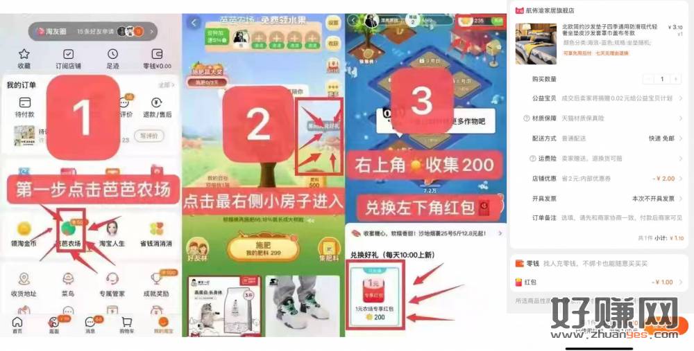 淘宝“芭芭农场”兑换1亓荭包看上图步骤,0.1抵扣商