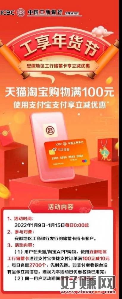 安徽地区,工行储蓄卡,淘宝满100-10,可冲电费