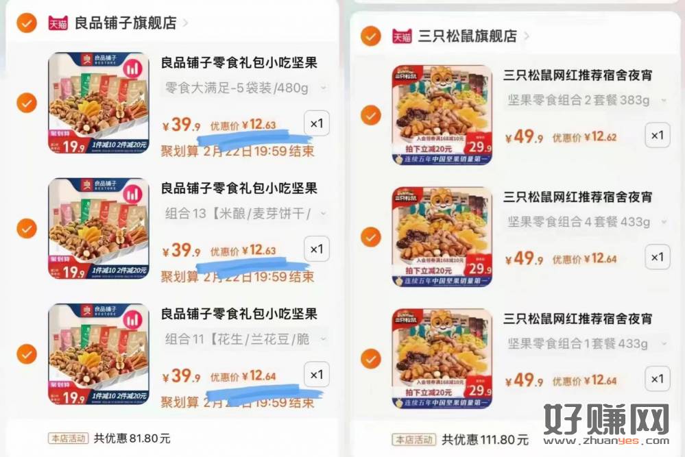 良品铺子拍三箱只要37元三只松鼠拍三箱只要37元爱