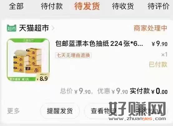 0撸6包抽纸 有一些账号有8元福袋 价格不对的换号去看看 速度上 活动就一会