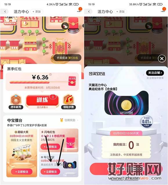 打开淘宝APP扫码进入活动,每天用200活力值下注即可参与抽奖