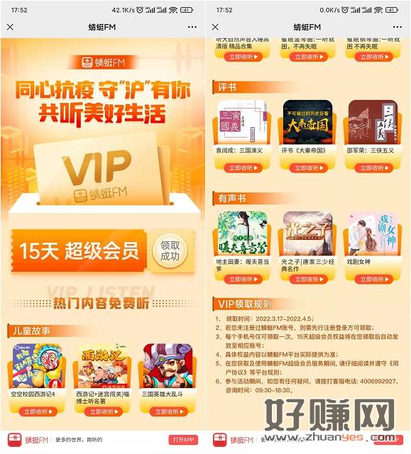 手机打开链接进入活动登录账号后即可免费领取15天蜻蜓FM超级会员!不限制地区!亲测领取秒到账!