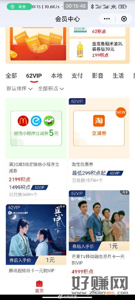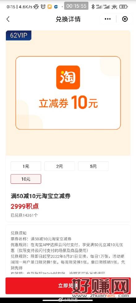 云闪付,会员中心,有2999积点兑换淘宝50-10券