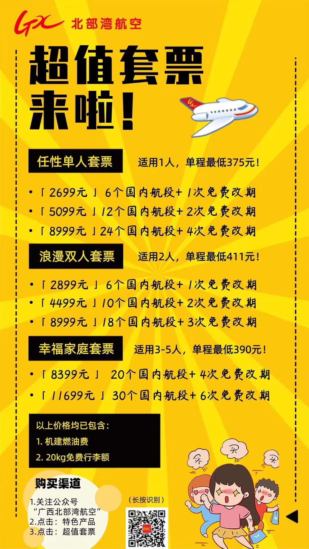 北部湾航空公司推出的机票套餐,节假日通用(除了春节),优惠力度不错,有出行需求的可以看看!