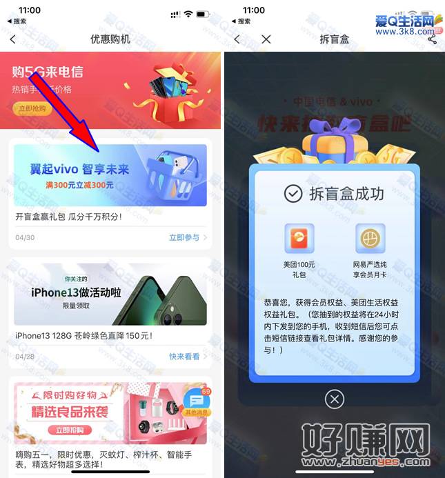 电信开盲盒赢礼包 亲测抽中网易严选会员