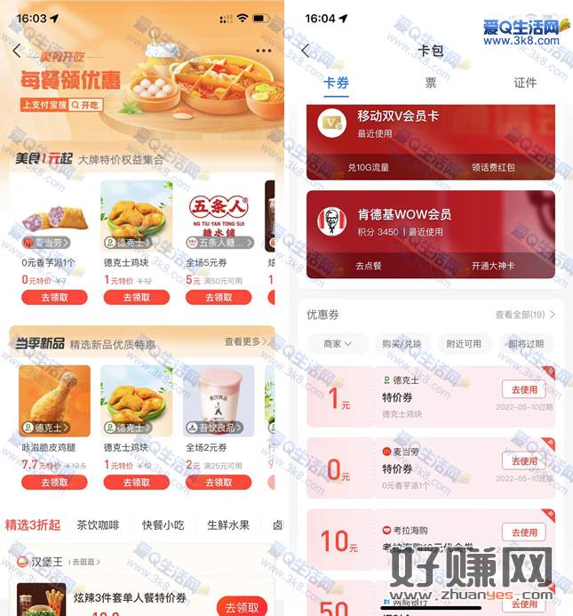 这个活动是在支付宝里面可以免费领德克士和麦当劳的小吃