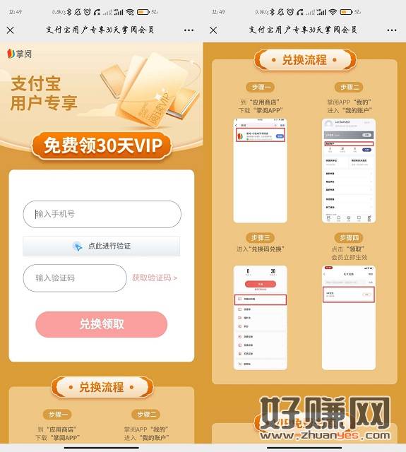 手机打开链接进入活动 输入手机号即可免费领取30天掌阅读书会员,爱看书的小伙伴们可以去领取一下!
