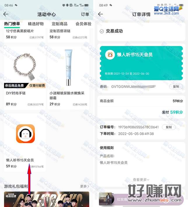 QQ音乐59积分兑换懒人听书会员15天 亲测已领取