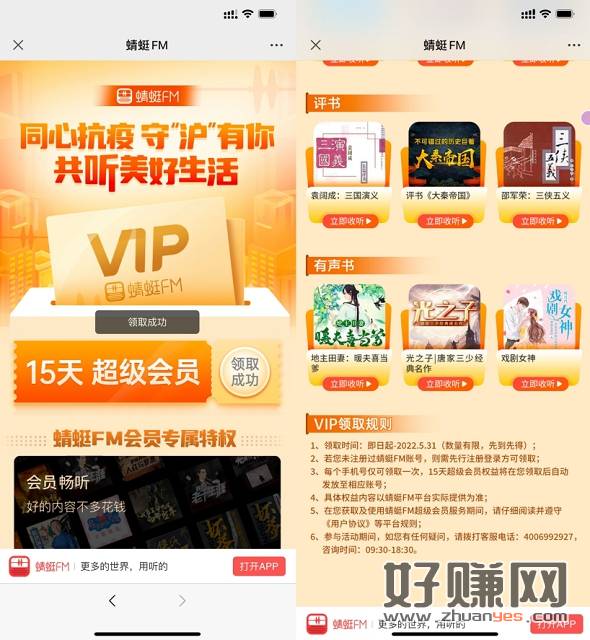 免费领取15天蜻蜓FM超级会员 亲测秒到