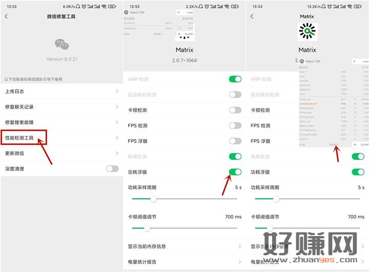 进来后点击【性能检测工具】进去 就能看见各种微信自带的小工具了,包含FPS检测、功耗浮窗等