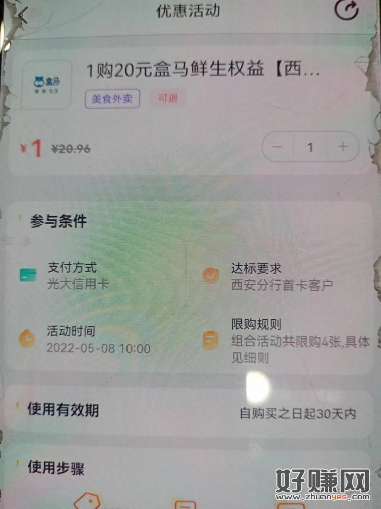 阳光惠生活,一元购四次20元的盒马或美团权益
