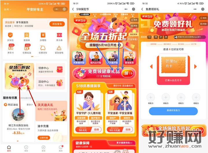 平安好车主邀请4人助力免费领取芒果TV会员月卡、实物等
