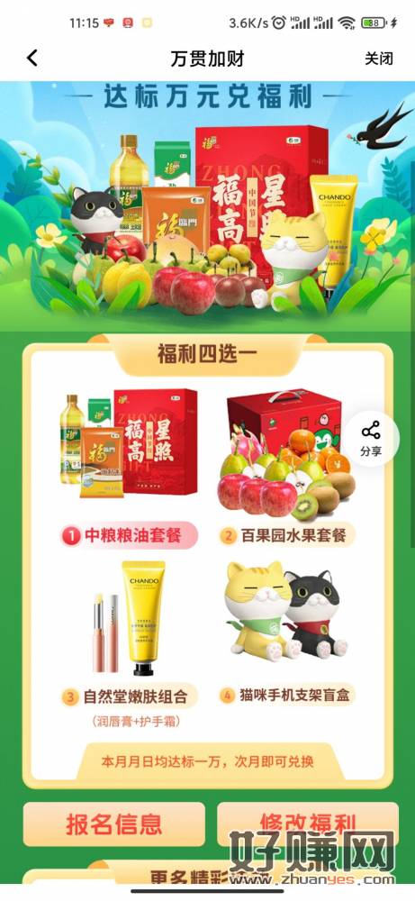 平安银行搜索万贯加财参加活动,万元达标一个月礼品四选一