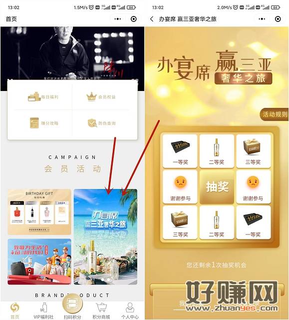 微信扫码进入活动 注册登录后点击首页的【办宴席 赢三亚奢华之旅】进入活动