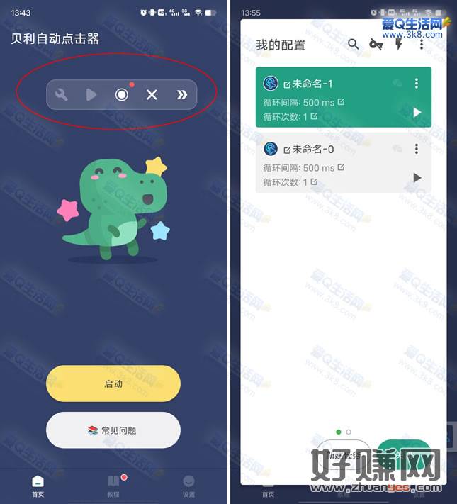 打开软件会提示开启权限-去设置开启即可-开启后有悬浮窗口-点击中间圈圈-录制记忆点击位置-保存配置-播放启动就可以了-也可以在悬浮窗口做错的设置按钮查看记录使用