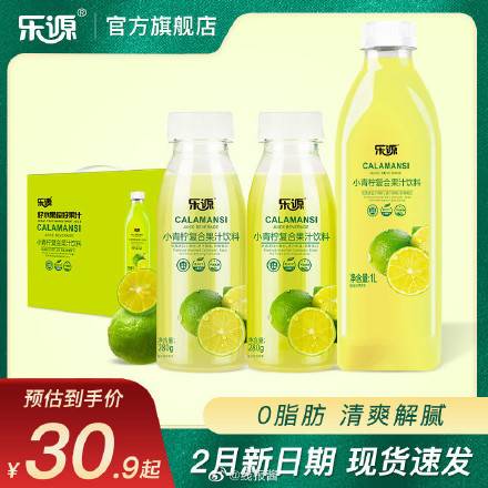 乐源小青柠汁饮料0脂果汁饮料,6瓶29.9,8瓶38.9[ 官