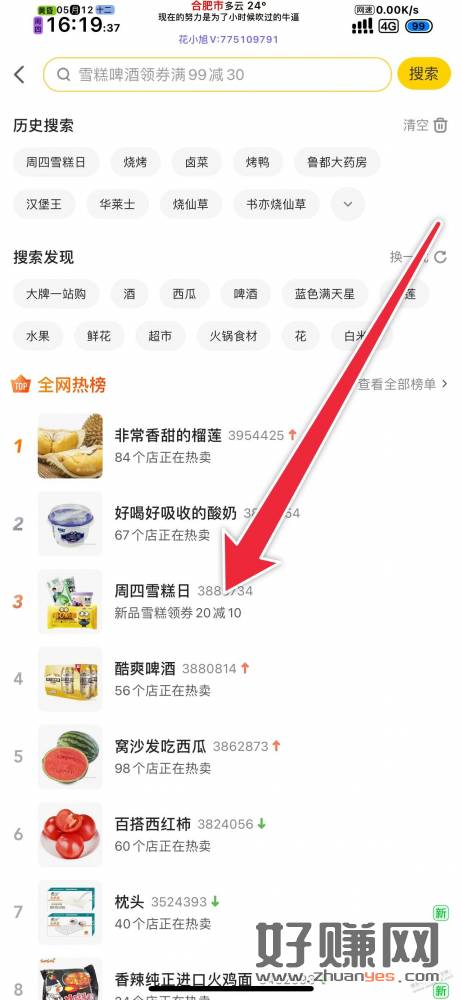 美团外卖APP 点超市便利-搜索栏”周四雪糕日“20-10券,有需可看