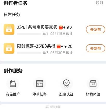 手机陶宝-我的-点头像-右上角三个点,创作中心看看,超多人有20元